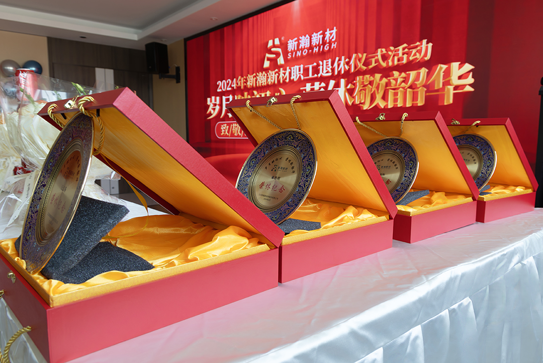 2024年8月6日,新瀚新材在公司多功能厅举办了以“ 岁月映初心,荣休敬韶华 ”为主题的 2024 年度职工退休仪式。此次活动不仅是对辛勤耕耘、无私奉献的退休职工们的致敬也是对公司文化传承与未来发展的又一次深情展望。